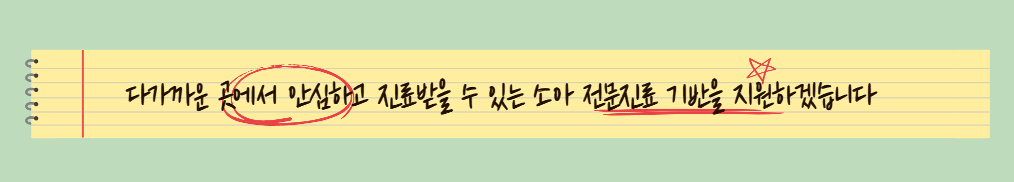 가까운 곳에서 안심하고 진료받을 수 있는 소아 전문진료 기반을 지원하겠습니다.